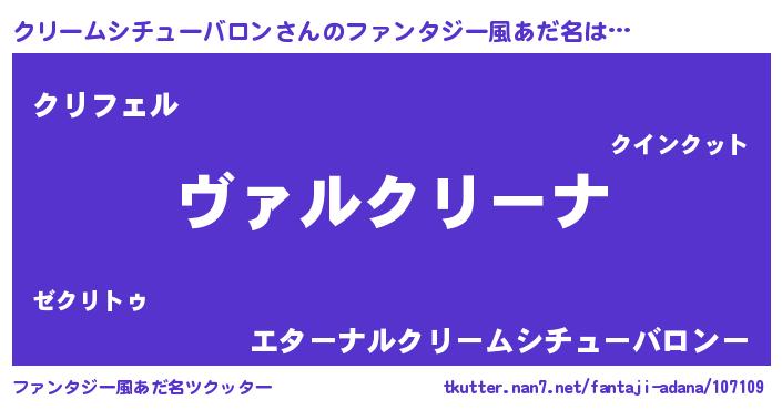 | 男性向けラノベタイトル風あだ名 | 『魔弾の王とクリームシチューバロン』 |