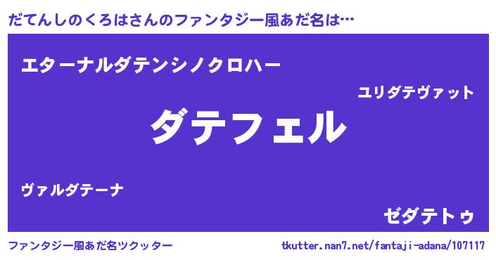 | 男性向けラノベタイトル風あだ名 | 『だてんしのくろはの憂鬱』 |