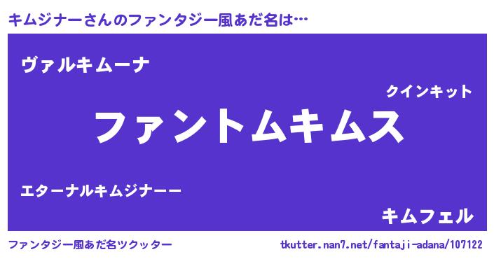 | 女子向けラノベタイトル風あだ名 | 『キムジナー様がみてる』 |