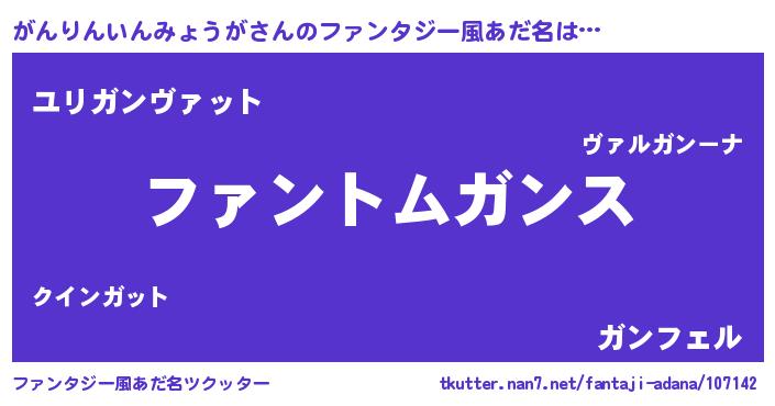 | 男性向けラノベタイトル風あだ名 | 『がんりんいんみょうがの嫁は女の子じゃないと思った?』 |