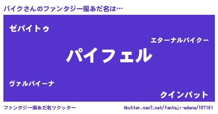 | 意味不明あだ名 | 『ペロリンパイク』『自称パイク』 |