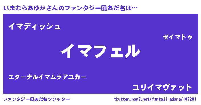 | 男性向けラノベタイトル風あだ名 | 『イマムラアユカアートオンライン』 |
