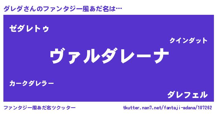 | 男性向けラノベタイトル風あだ名 | 『この素晴らしい世界にダレダを!』 |