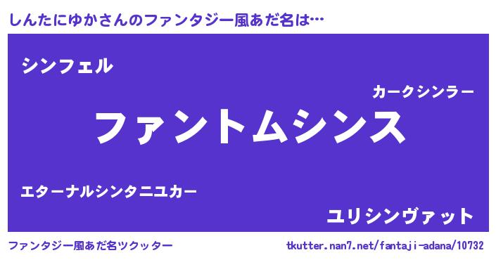 | ポケモン風あだ名 | 『ヒシンタニユカ』『シンチュウ』 |