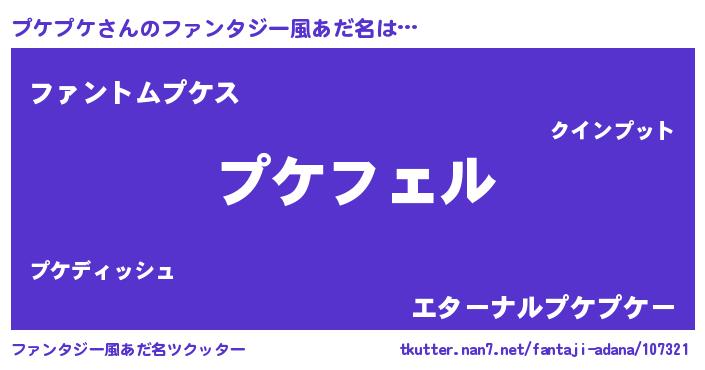 | 意味不明あだ名 | 『ペロリンプケプケ』『永久保存プケプケ』 |