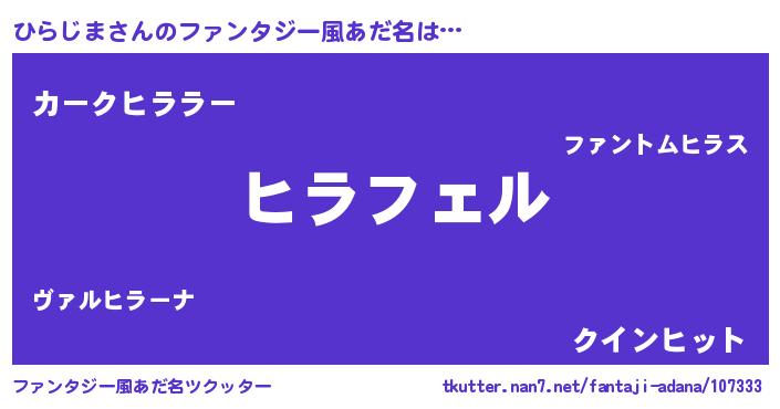 | ヒーロー風カッコイイあだ名 | 『スーパーヒラジマ』『愛の使者ひらじま』 |