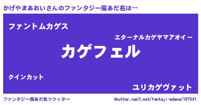 | 胡散臭い通販商品みたいなあだ名 | 『必ず成功する霊験あらたかなお札…その名も「かげやまあおい」』 |