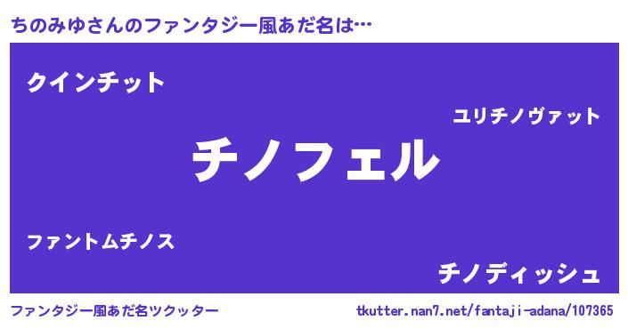 | 男性向けラノベタイトル風あだ名 | 『ちのみゆの憂鬱』 |