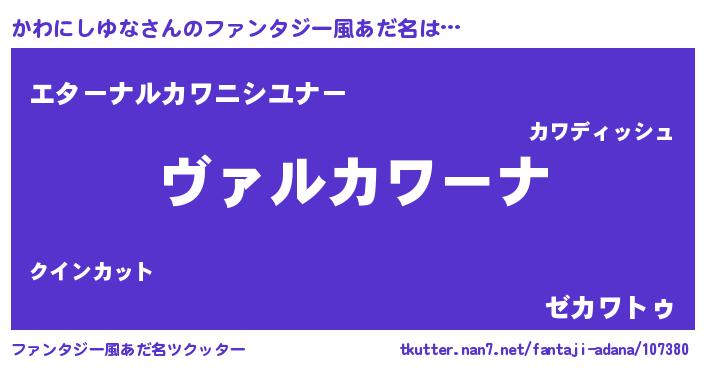 | 男性向けラノベタイトル風あだ名 | 『この素晴らしい世界にかわにしゆなを!』 |