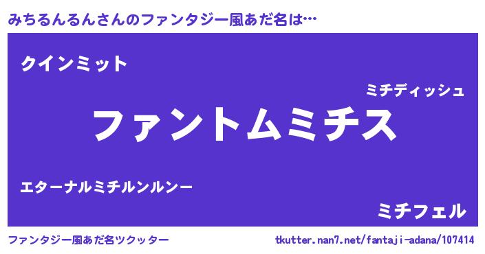 | 男性向けラノベタイトル風あだ名 | 『ダンジョンにみちるんるんを求めるのは間違っているだろうか』 |