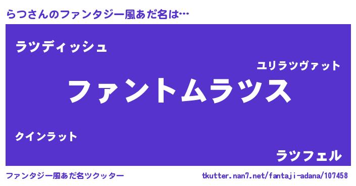 | 女子向けラノベタイトル風あだ名 | 『らつ様がみてる』『らつの玉の輿計画!』 |
