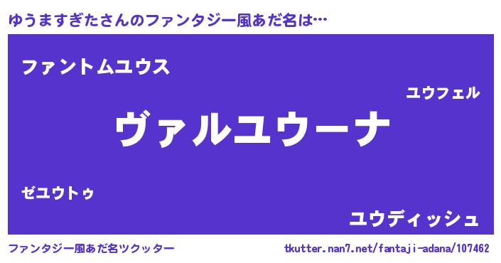 | 男性向けラノベタイトル風あだ名 | 『魔弾の王とゆうますぎた』 |