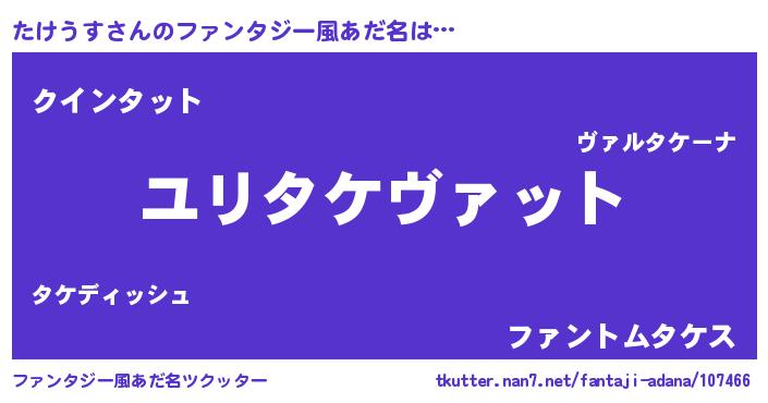 | ヒーロー風カッコイイあだ名 | 『慈愛の使者たけうす』『天弓騎士タケ』 |