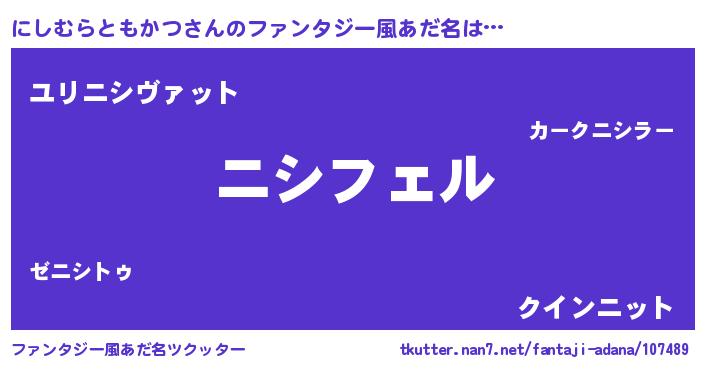 | 男性向けラノベタイトル風あだ名 | 『にしむらともかつの憂鬱』 |