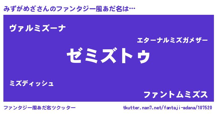 | 意味不明あだ名 | 『自称みずがめざ』『永久保存みずがめざ』 |