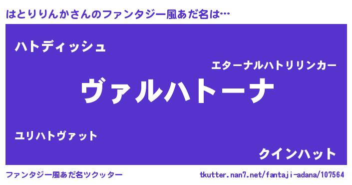 | 胡散臭い通販商品みたいなあだ名 | 『あなたにだけ特別に提供する100年もののヴィンテージワイン…その名も「はとりりんか」』 |