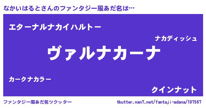 | 男性向けラノベタイトル風あだ名 | 『魔弾の王となかいはると』 |