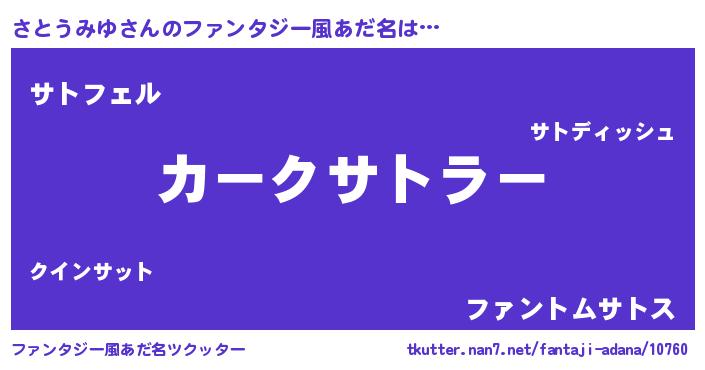 | ヒーロー風カッコイイあだ名 | 『スーパーサトウミユ』『黄金騎士サト』 |