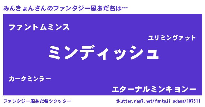 | ヒーロー風カッコイイあだ名 | 『ネオミンキョン』『炎刃騎士ミン』 |