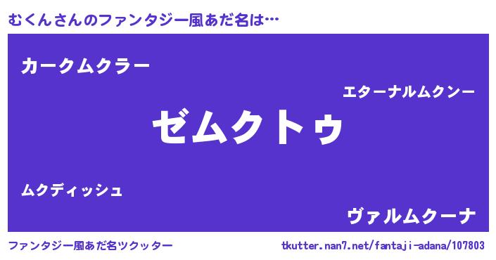 | ヒーロー風カッコイイあだ名 | 『究極戦士ムクン』『仮面ムクダー』 |