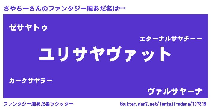 | 男性向けラノベタイトル風あだ名 | 『サヤチースレイヤー』 |