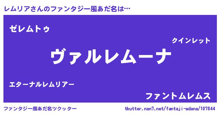 | ヒーロー風カッコイイあだ名 | 『仮面レムダー』『超時空戦士レムリア』 |