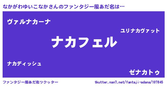 | 男性向けラノベタイトル風あだ名 | 『ナカガワユイコナカアートオンライン』 |
