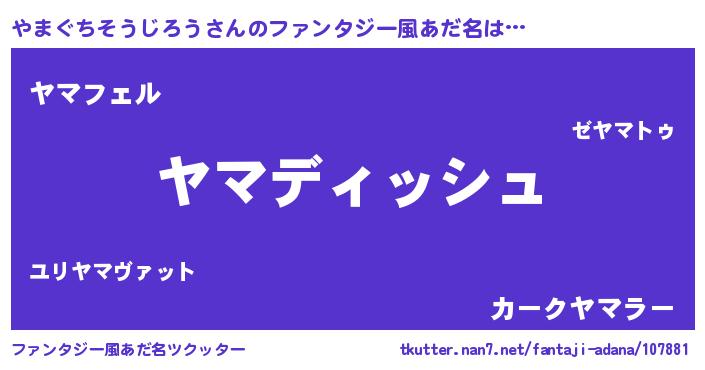 | 男性向けラノベタイトル風あだ名 | 『やまぐちそうじろうに滅ぼされるだけの簡単なお仕事です』 |