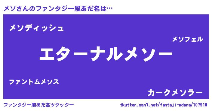 | 意味不明あだ名 | 『メソフォーエバー』『永久保存メソ』 |