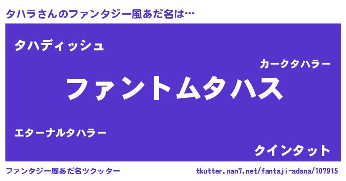 | 男性向けラノベタイトル風あだ名 | 『ダンジョンにタハラを求めるのは間違っているだろうか』 |