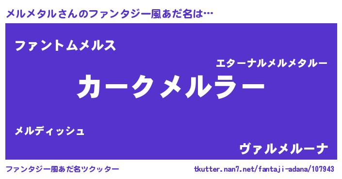 | 意味不明あだ名 | 『とにかく怪しいメルメタル』 |