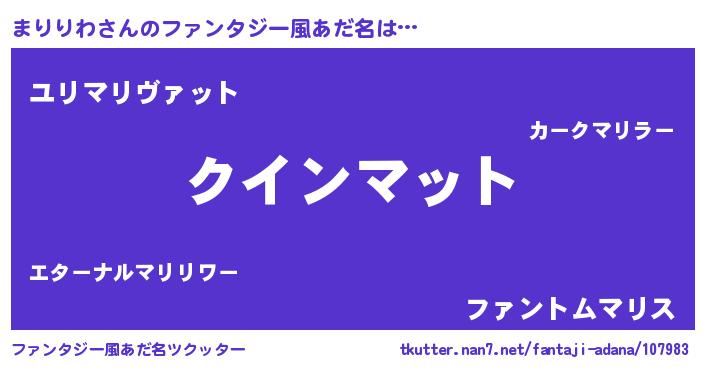 | ヒーロー風カッコイイあだ名 | 『友情の使者まりりわ』『魔戒騎士マリ』 |