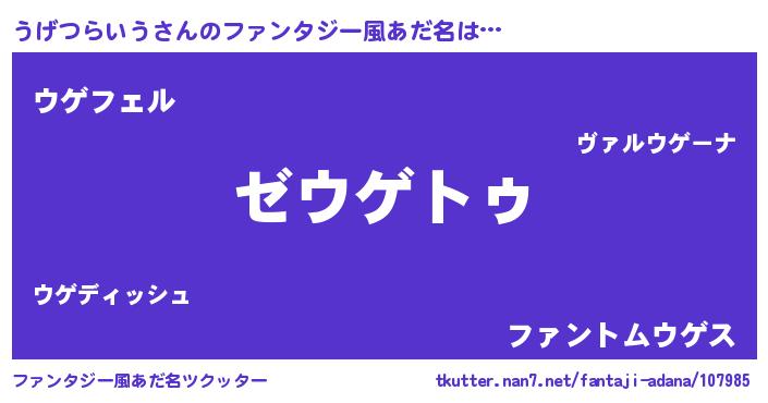 | 意味不明あだ名 | 『自称うげつらいう』 |