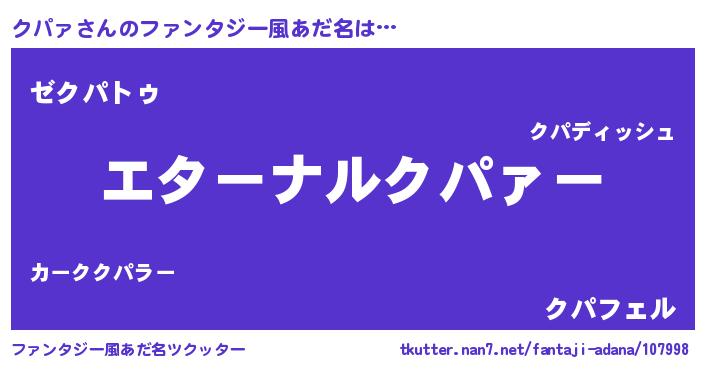 | 意味不明あだ名 | 『クパァフォーエバー』『自称クパァ』 |