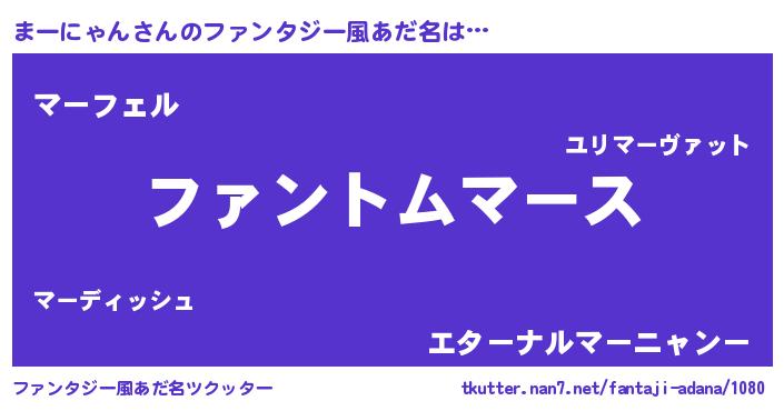 | 胡散臭い通販商品みたいなあだ名 | 『信頼と実績のサプリメント…その名も「まーにゃん」』 |