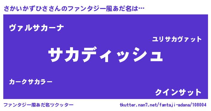 | ヒーロー風カッコイイあだ名 | 『ネオサカイカズヒサ』『仮面サカダー』 |