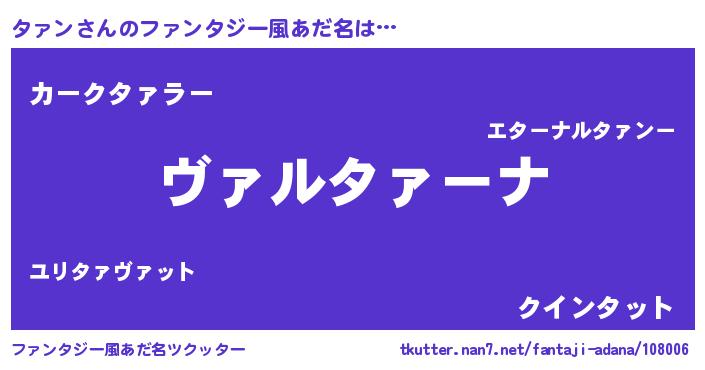 | 意味不明あだ名 | 『住所不定無職タァン(6歳)』『自称タァン』 |