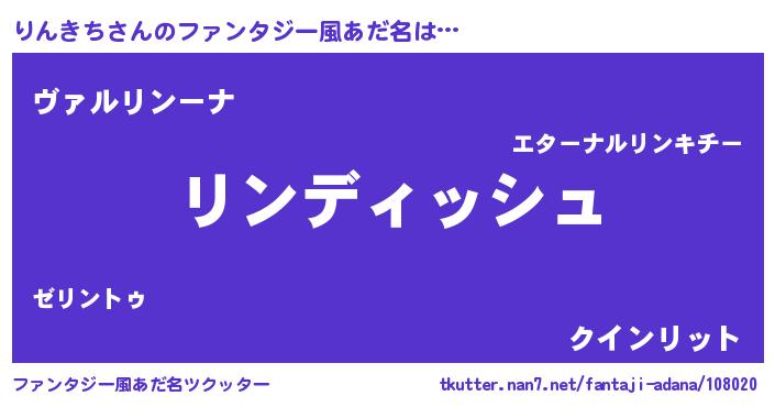 | 男性向けラノベタイトル風あだ名 | 『りんきちという概念が存在しない退屈な世界 』 |