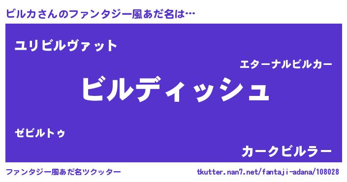 | 男性向けラノベタイトル風あだ名 | 『ビルカという概念が存在しない退屈な世界 』 |