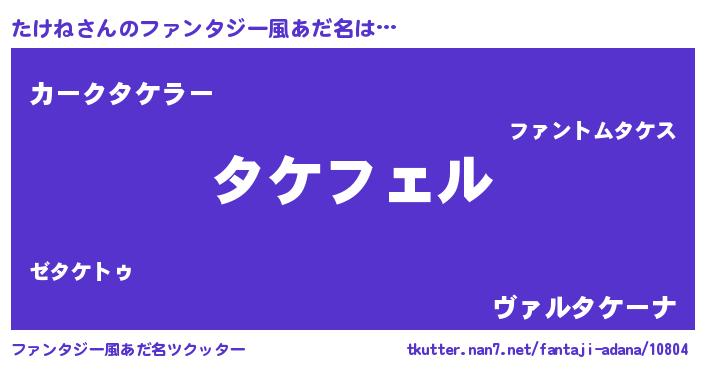 | 男性向けラノベタイトル風あだ名 | 『たけねに滅ぼされるだけの簡単なお仕事です』 |