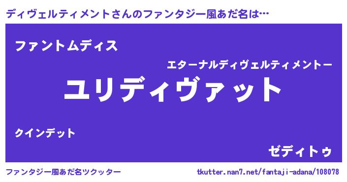 | 女子向けラノベタイトル風あだ名 | 『ディヴェルティメントの玉の輿計画!』 |