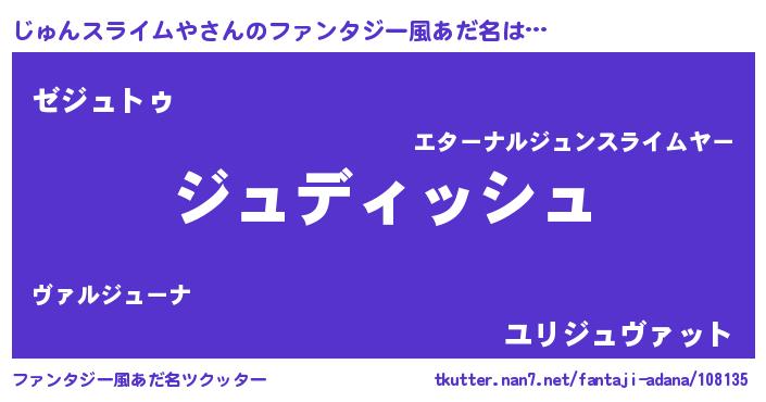 | 男性向けラノベタイトル風あだ名 | 『じゅんスライムやという概念が存在しない退屈な世界 』 |