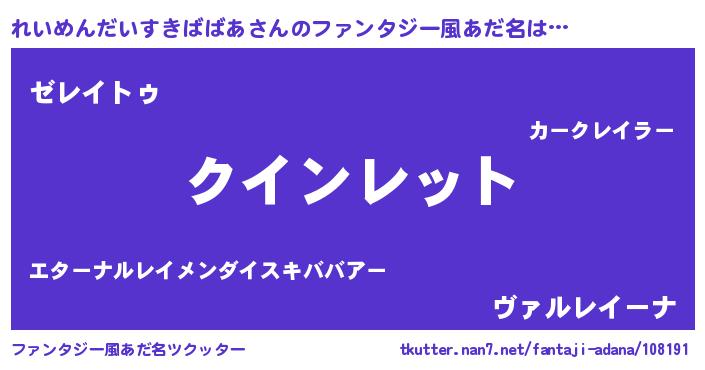 | 女子向けラノベタイトル風あだ名 | 『れいめんだいすきばばあ恋絵巻』 |