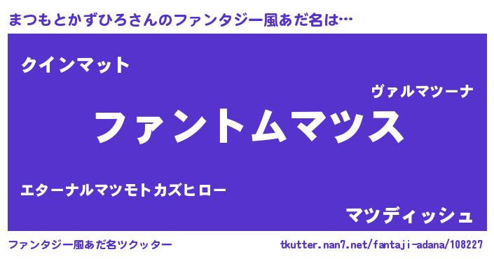 | 男性向けラノベタイトル風あだ名 | 『ダンジョンにまつもとかずひろを求めるのは間違っているだろうか』 |