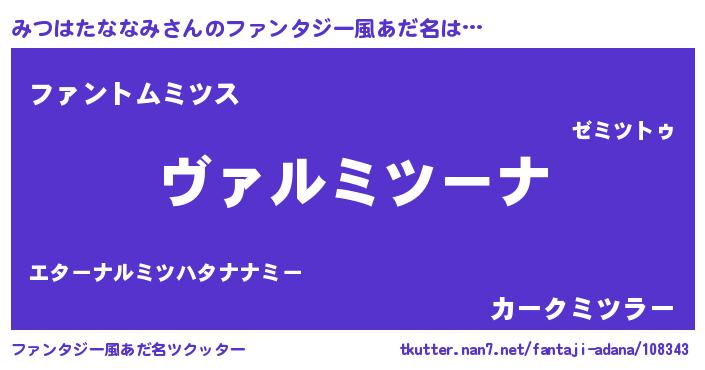 | 男性向けラノベタイトル風あだ名 | 『魔弾の王とみつはたななみ』 |