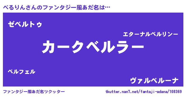 | 意味不明あだ名 | 『自称べるりん』『べるりんフォーエバー』 |