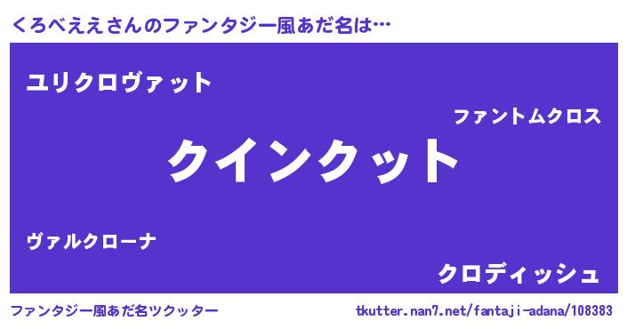 | 男性向けラノベタイトル風あだ名 | 『おまえをオタクにしてやるから、俺をくろべええにしてくれ! 』 |