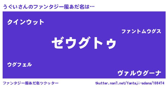 | 男性向けラノベタイトル風あだ名 | 『Re:うぐいから始める異世界生活』 |