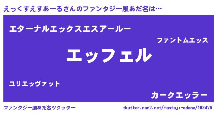 | 女子向けラノベタイトル風あだ名 | 『えっくすえすあーる姫と円卓の騎士』 |