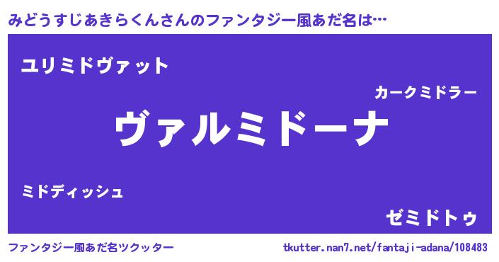 | ヘコむあだ名 | 『みどうすじあきらくん(笑)』『みどもー』 |